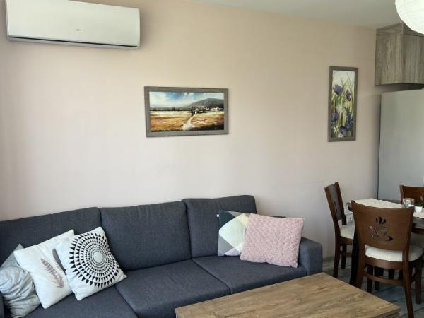 350 евро/685 лева.Двустаен апартамент в началото на кв. Картала - едно от предпочитаните места за живеене във В. Търново, с безплатен паркинг. Състои се от антре, една спалня, дневна с кухненска част, баня-тоалетна, остъклена тераса. Жилището е напълно обзаведено и оборудвано с всички необходими мебели и електроуреди от висок клас - вградени котлони и фурна, хладилник с фризер, пералня, съдомиялна, телевизори, два инверторни климатика. Намира се в блок ново строителство, на тихо място, изключително топъл през зимата и хладен в летните месеци. В цената са включени интернет и телевизия. Заповядайте на оглед!
